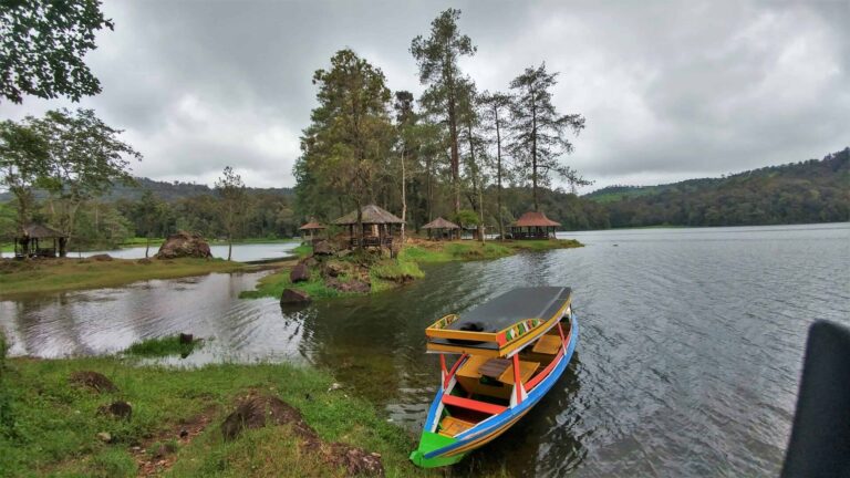 The lake is near Kawah Putih and is a popular venue for family outings. It is about 12 km southwest Of Kawah Putih. The highlight of the place is the wooden ship restaurant. The lake is nestled among the beautiful tea gardens. The panoramic view from the top of the ship is worth it. The restaurant was quite crowded when I was there in the evening.