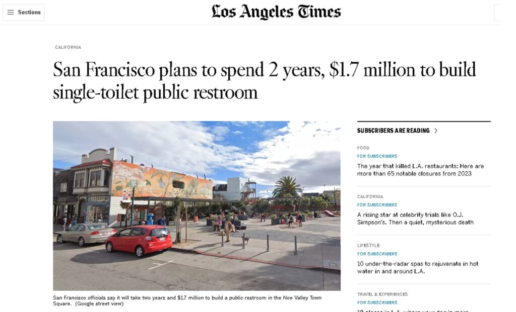 If that over-spending was not jaw-dropping enough, another project to build public restrooms in San Francisco (again) costs $1.7 million USD to build only ONE toilet!