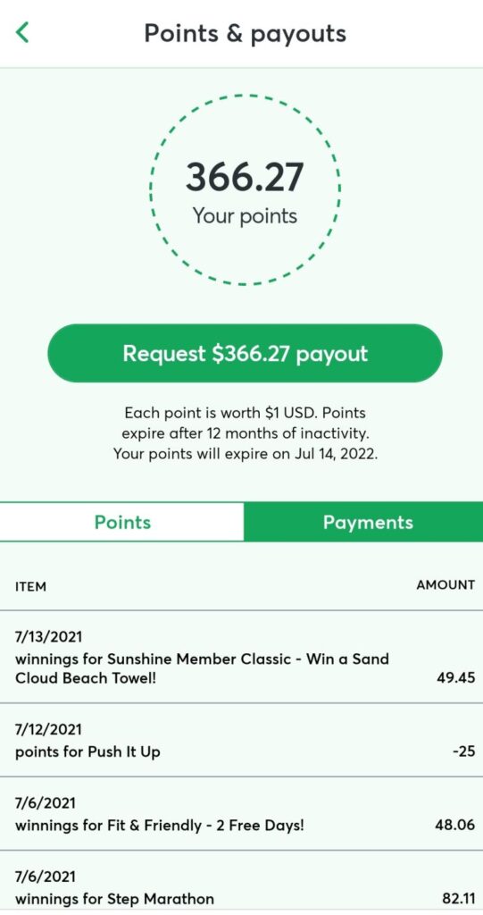 The app is good if you walk a lot daily or physically active; or even need motivation to be active. Each game will give you daily steps to complete each week: some are light and easy (low pay-outs), while some require that extra effort (high pay-outs). Length of each game last from 2 weeks, 6 weeks, or 8 weeks.