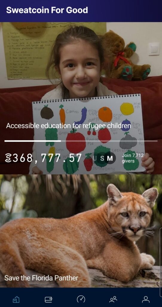 Sweatcoin is free, and points are accumulated as SWC – the more you walk, the more SWC you get. The SWC can be exchanged for vouchers online from different merchandise (it keeps updating regularly). The SWC can also be donated to charities listed in the app (below left image). When I first joined there was an option to exchange 20,000 SWC for $1,000 USD. Unfortunately, that offer is no longer available but I’m hoping that it would return. I started with Sweatcoin in March 2020 (during the Covid19 lockdown) and managed to accumulate only 7,991 SWC (red box below), as of July 2021. I still need to walk few years to reach that 20,000 SWC (Sigh!).