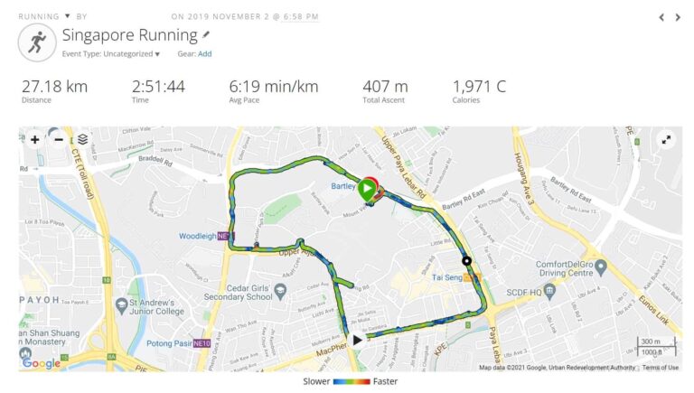 I ran a distance of 27 km run. That was on the evening of 2 November 2019. Below is a screenshot of the run for reference.
