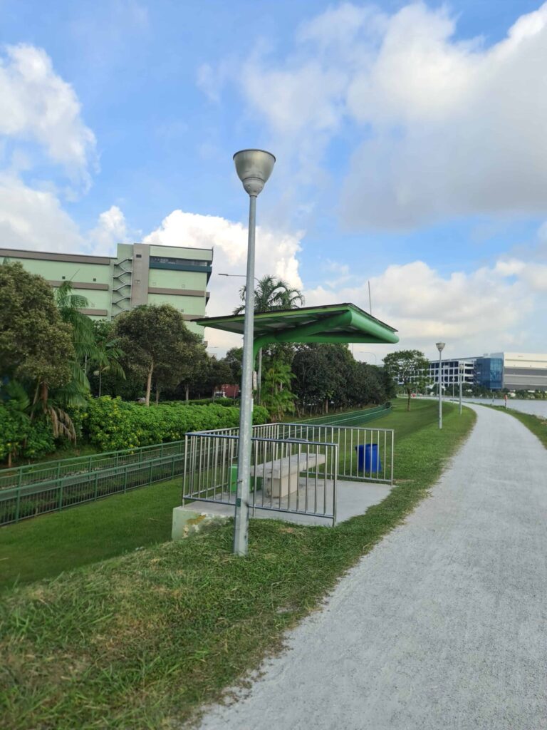 The entire perimeter around the reservoir is about 6.2 km. There are several shelters provided along the track, but beyond that you are at the mercy of the open space. If you need to rehydrate and relieve, there is washroom and water fountain too but its towards one end of the track.