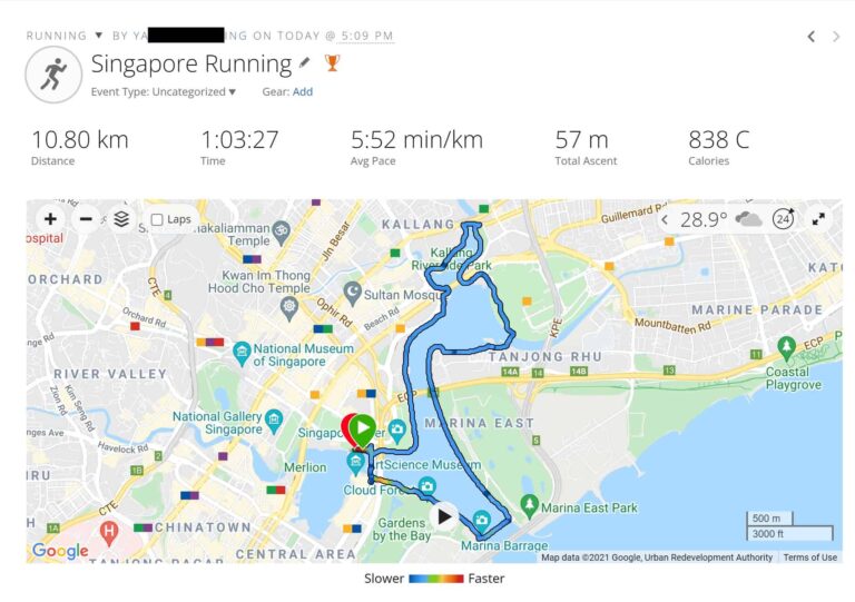 Finally! Managed to participate in an in-person Run Event after 2 years of hiatus (my last in-person run was in December 2019). I joined the 10km category of the Standard Chartered Singapore Marathon (SCSM) 2021 on 5 December 2021.