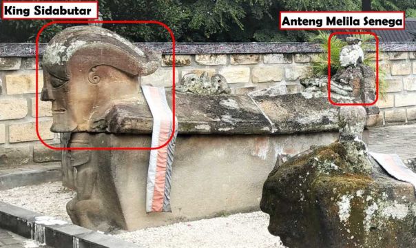 At the front of the tombstone, the head King Sidabutar is carved. At the rear end is Anteng Melila Senega, a lady who the king is said to have loved, without her reciprocating his affections (Sigh!).